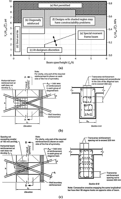 Three short half-scale coupling beams were prepared and tested in this study: two with openings (E-Op and E-Op-Ad) and one without (S), which served as the reference. The labels for the beams are as follows: ” E-Op” refers to an opening near the span end and “Ad” refers to additional reinforcement. All specimens were designed to have a shear stress (q) equal to 0.48 \(\sqrt {{{f^{\prime}}_c}}\) (MPa), where q is calculated as the shear strength of a coupling beam divided by its cross-sectional area (b × h). The shear strength (q) of the coupling beams was calculated according to Sect. 18.10.7.4 of ACI 318 − 191.